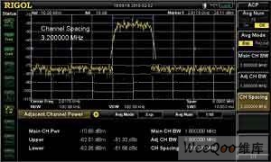 OBW占用帶寬功能可以檢測自己關(guān)心部分的能量是否在特定的帶寬內(nèi)。通過設(shè)置功率比為99%,測得該信號在帶寬1.396666MHz內(nèi)包含了 99%的能量。