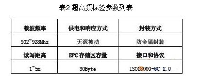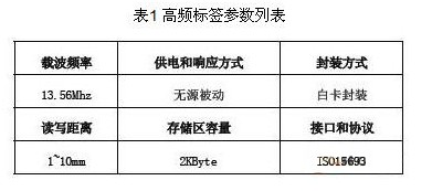 應(yīng)用方案中共涉及到高頻(13.56MHz)超高頻(915MHz)兩種不同類(lèi)型的RFID標(biāo)簽,所選擇的RFID標(biāo)簽規(guī)格如表1、表2 所示。