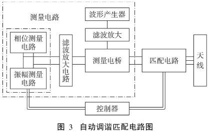 本文提出了一種自動匹配技術(shù),其電路如圖3所示,主要包含測量電路,匹配電路和控制電路。因為手工匹配方法耗時長,且需要良好的意識和豐富的經(jīng)驗來選擇合適的電容,另外必須配備一些昂貴的設(shè)備,如網(wǎng)絡(luò)分析儀或阻抗分析儀等。對于一些小公司來說,是不現(xiàn)實的。同時,一些手持式RF設(shè)備的發(fā)展使得手動匹配越來越不適應。對于這些移動設(shè)備,最理想的天線電路應該僅僅包含集成模塊,且隨著阻抗變化可以自動匹配。
