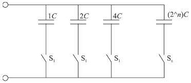 機械微調(diào)電容器既不是集成的也不是電可控的,二極管電容不能充分隔離信號電壓和控制電壓。因此,最好的方法是用電容陣列,如圖6所示,由半導體開關(guān)控制。將圖1 中的C1、C2 用電容陣列取代。當電容值在1到50 pF之間時,開關(guān)選用了低電容DMOS開關(guān)。與普通開關(guān)不同, DMOS開關(guān)存在寄生效應。在斷開期間,開關(guān)引腳之間、信號引腳與地之間都存在這寄生電容。這些電容使得電容陣列的調(diào)諧范圍變窄,同樣也使天線阻抗的調(diào)諧范圍變窄。這個問題仍然有待于進一步的研究。
