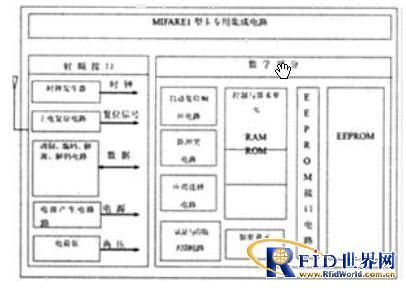 非接觸式IC卡又稱射頻卡,是世界上最近幾年發(fā)展起來的一項新技術,它成功地將射頻識別技術和IC卡技術結(jié)合起來,解決了無源(卡中無電源)和免接觸這一難題。MIFARE 1型射頻卡內(nèi)部的功能模塊及原理見下圖1