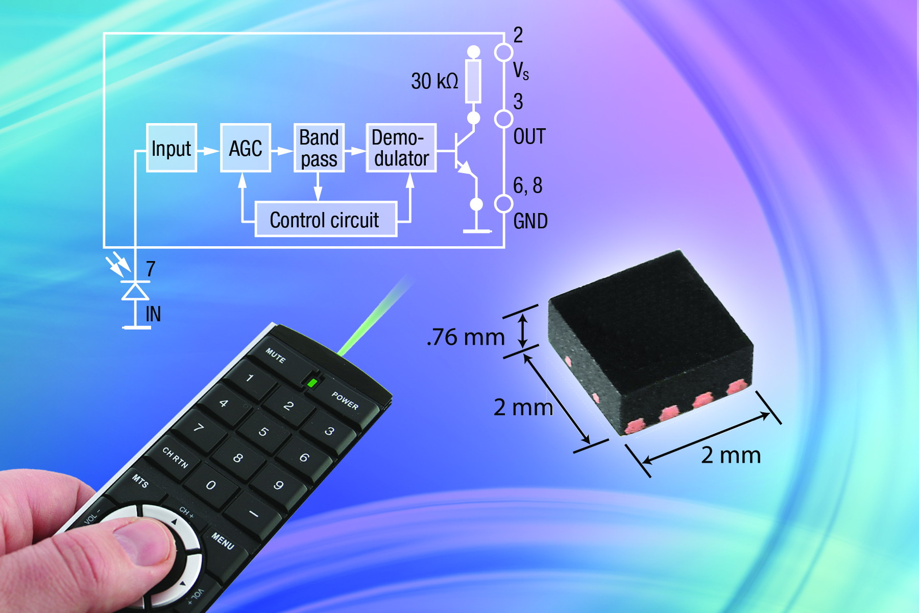 Vishay的標(biāo)準(zhǔn)遙控接收器是將光敏二極管和信號(hào)調(diào)制IC裝配在同一封裝內(nèi)。VSOP383..和VSOP584..是把信號(hào)調(diào)制IC與光敏二極管分開(kāi),單獨(dú)封裝于QFN封裝里,為各種應(yīng)用提供了極大的靈活性。例如,可以采用多個(gè)光敏二極管對(duì)準(zhǔn)不同方向來(lái)實(shí)現(xiàn)超寬空間接收信號(hào)的系統(tǒng),光敏管還可以采用可滿足特殊要求的封裝,或是接收非傳統(tǒng)波長(zhǎng),例如藍(lán)光,用于水下作業(yè)或可見(jiàn)光通信。
