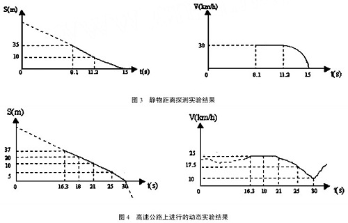 為了評價汽車紅外防撞系統(tǒng)的性能,包括探測障礙物距和相對速度的性能,采用靜物距離探測和在高速公路上行駛時動態(tài)探測兩種試驗。