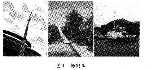 場(chǎng)測(cè)儀器是架在車(chē)上,在車(chē)上豎一個(gè)電線(xiàn)桿,離地10 m處安置一個(gè)接收天線(xiàn),再附加一些接收機(jī)、*器、測(cè)量?jī)x等設(shè)備。天線(xiàn)接收到的信號(hào)送入車(chē)內(nèi),如圖1所示。