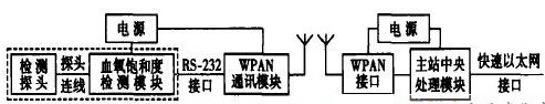 基于WPAN的脈搏血氧飽和度檢測儀的系統(tǒng)結(jié)構(gòu)如圖1所示。