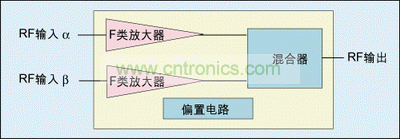 使用異相技術(shù)時(shí),分放大器的選擇至關(guān)重要,F(xiàn)類放大器特別適合工作于此模式。F類放大器不是線性的,但是作為異相放大器系統(tǒng)中的分放大器它工作于固定振幅,其實(shí)這一點(diǎn)并不重要。F類放大器在二次諧波和三次諧波采用特殊的終結(jié)方法,使放大器晶體管在“開”時(shí)電壓最小,從而減小開關(guān)設(shè)備中的功率損耗。該類放大器的峰值輸出功率與漏電壓平方成正比,因此可用Vdd電源電壓來(lái)設(shè)定平均輸出功率,可將Vdd設(shè)定為對(duì)于任何平均輸出功率放大器均運(yùn)行于可能達(dá)到的最大效率。