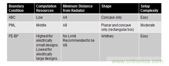 最后對三種輻射邊界條件的區(qū)別總結歸納如下表: