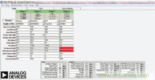 在為接收器設(shè)計(jì)設(shè)置級(jí)聯(lián)噪聲系數(shù)和截距模型時(shí),你實(shí)際上需要為系統(tǒng)建模三次:一次針對(duì)最小信號(hào)電平,即最大增益下的AGC關(guān)閉電平;第二次針對(duì)最大信號(hào)電平,即最大增益衰減下的AGC開啟電平;最后一次針對(duì)接收器的標(biāo)稱輸入電平。你還需要在所有三種模型中考慮交調(diào)效應(yīng)。幸運(yùn)的是,ADI的 ADISIMRF(圖1)等免費(fèi)工具將助您一臂之力;這類工具通常內(nèi)置適用于RF增益塊、混頻器、衰減器、巴倫、濾波器和高速轉(zhuǎn)換器的模型庫(kù)。