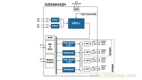 轉(zhuǎn)換器提供低抖動參考定時,可替代依賴于昂貴、大封裝尺寸的壓控SAW振蕩器(VCSO)的分立定時解決方案。與僅支持單一固定頻率的VCSO不同,新型Si534xH時鐘提供很寬的頻率范圍,支持頻率高達(dá)2.7GHz,且無需改變物料清單(BOM)元器件。