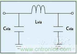 圖3.過(guò)孔的電特性模型