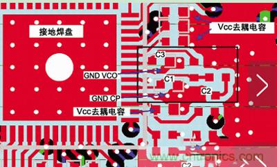 在本文的后面部分將會(huì)看到,PLL的實(shí)現(xiàn)在系統(tǒng)設(shè)計(jì)中總是面臨巨大挑戰(zhàn),要想獲得滿意的雜散特性必須有良好的地線布局。目前,IC設(shè)計(jì)中將所有的PLL和VCO都集成到了芯片內(nèi)部,大多數(shù)PLL都利用數(shù)字電流電荷泵輸出通過(guò)一個(gè)環(huán)路濾波器控制VCO。通常,需要用二階或三階的RC環(huán)路濾波器濾除電荷泵的數(shù)字脈沖電流,得到模擬控制電壓??拷姾杀幂敵龅膬蓚€(gè)電容必須直接與電荷泵電路的地連接。這樣,可以隔離地回路的脈沖電流通路,盡量減小LO中相應(yīng)的雜散頻率。第三個(gè)電容(對(duì)于三階濾波器)應(yīng)該直接與VCO的地層連接,以避免控制電壓隨數(shù)字電流浮動(dòng)。如果違背這些原則,將會(huì)導(dǎo)致相當(dāng)大的雜散成分。