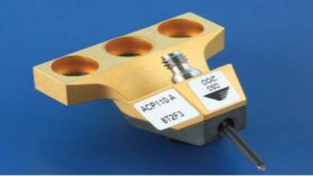 同時期,Cascade公司在1994年的第43屆春季ARFTG會議上展示了新型的40-GHz空氣-共面探針(ACP)(圖5)。幾年之內(nèi),ACP探針迅速達到了110GHz(1-mm連接器模型)和140GHz(基于波導(dǎo)模型),代替了WPH生產(chǎn)線。到目前為止,由于ACP的柔軟及無損式接觸,許多工程師喜歡將ACP用于探測金壓點。