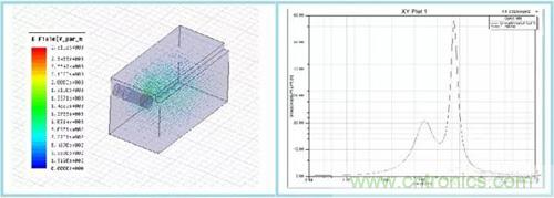 此處仿真時,需要特別注意端口的簡歷方式,需要順著電場的方向。在計算耦合帶寬時,能同時觀察到濾波器通帶諧波出現(xiàn)的頻率點,通過合理選擇耦合窗口的大小,開口方向,盡量降低高次模諧波幅度。