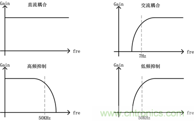 交流耦合:是高通濾波,截止頻率約7Hz;