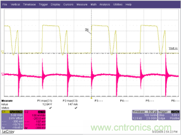 圖2. DCM中升壓轉(zhuǎn)換器的典型測量波形