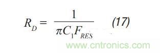 第5步:RD可以通過公式17計(jì)算得出。FRES通過公式7計(jì)算得出,忽略CD。這是一個(gè)很好的近似,因?yàn)镽d通常足夠大,從而CD幾乎不影響濾波器諧振位置。