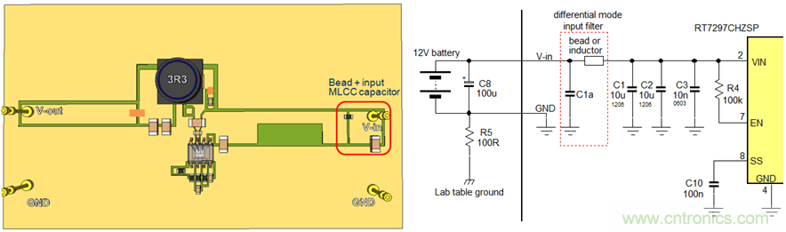 上述實驗最重要的結(jié)論是確認(rèn)了更好地放置CIN可以改善開關(guān)切換波形上的過沖和振鈴信號的幅度,還能降低高頻輻射。