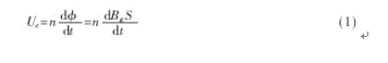 電磁感應(yīng)式傳感器的工作原理是:當(dāng)它貼著鋼管表面掃查時,鋼管缺陷產(chǎn)生的漏磁場會引起穿過線圈的磁通量變化,從而使電磁線圈中產(chǎn)生感生電動勢,形成缺陷信號。當(dāng)檢測用的電磁線圈與鋼管做相對運動時,檢測漏磁場的線圈所產(chǎn)生的感應(yīng)電動勢Uc為: