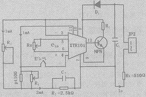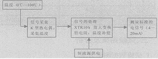 整套系統(tǒng)要求在0~100℃范圍對應輸出4mA~20mA的電流型溫度變送器。