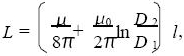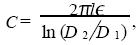 式中l(wèi)為同軸電纜長度; E為填充介質(zhì)的介電常數(shù);D1 為芯線直徑;D2 為屏蔽網(wǎng)的內(nèi)徑; L為填充介質(zhì)的磁導(dǎo)率; μ0 為真空磁導(dǎo)率. 同軸電纜的分布電容與電感除與其長度成正比外, 還與屏蔽網(wǎng)的內(nèi)徑和形狀密切相關(guān)。當(dāng)同軸電纜足夠長時, 其分布電感均比較大; 此時外力引起的同軸電纜變形只會引起分布電容和分布電感的微小變化。因為分布電容與分布電感的變化趨勢相反, 在設(shè)計該傳感器時, 為了突出分布電容對傳感器性能的影響, 要在同軸電纜的芯線上串接一個較大的電感,使分布電感的變化率遠(yuǎn)遠(yuǎn)小于分布電容的變化率。同軸電纜的特性阻抗為
