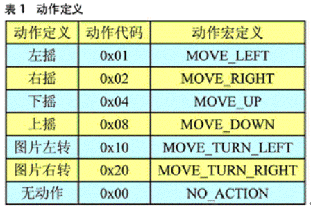 系統(tǒng)還為每個(gè)動(dòng)作定義了相應(yīng)的動(dòng)作代碼,見表1。