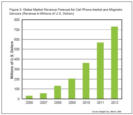 - 2008年下半年加速計在手機產(chǎn)業(yè)呈現(xiàn)爆炸性增長