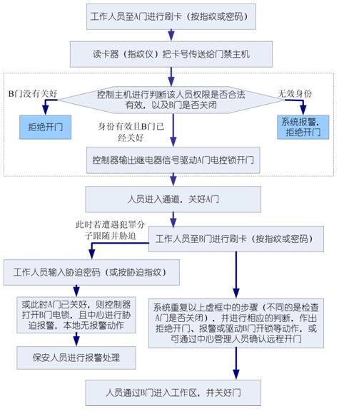 根據(jù)不同場所要求,本系統(tǒng)可以擴展為ABC三門以及更多門的多門互鎖門禁,來達(dá)到更高級別的安全要求。還可以配合中心遠(yuǎn)程控制,來實現(xiàn)本地確認(rèn)開門及中心遠(yuǎn)程開門相結(jié)合的AB互鎖雙門門禁。系統(tǒng)功能特點如下: