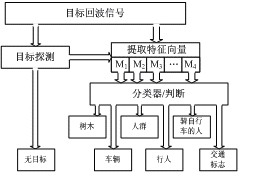 基于汽車?yán)走_(dá)傳感器的目標(biāo)分類系統(tǒng)的系統(tǒng)結(jié)構(gòu)和信號(hào)處理過(guò)程,它可以識(shí)別六種不同的雷達(dá)目標(biāo)的類別,包括:步行者、騎自行車的人、車輛、人群、樹木和交通標(biāo)志等。