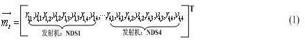 汽車?yán)走_(dá)網(wǎng)絡(luò)測(cè)量目標(biāo)的距離和速度是通過(guò)對(duì)每個(gè)傳感器測(cè)得的目標(biāo)信息進(jìn)行數(shù)據(jù)融合而得到的。在一個(gè)測(cè)量周期中,每個(gè)NDS輪流擔(dān)當(dāng)一次發(fā)射機(jī)。因此有16種距離和相對(duì)速度的組合,用向量表示為: