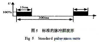 電磁兼容設(shè)計靠電磁兼容試驗來驗證與改進(jìn)?,F(xiàn)在,有了比較完善的電磁兼容試驗方法和專門的試驗設(shè)備。開關(guān)電器動作時,形成強(qiáng)烈的干擾,產(chǎn)生瞬態(tài)脈沖。IEC61000-4-4標(biāo)準(zhǔn)對電快速瞬變脈沖干擾作出規(guī)定,分為單個脈沖、一群脈沖、脈沖群。脈沖群波形如圖5所示,周期為300ms,脈沖束寬度為15ms。