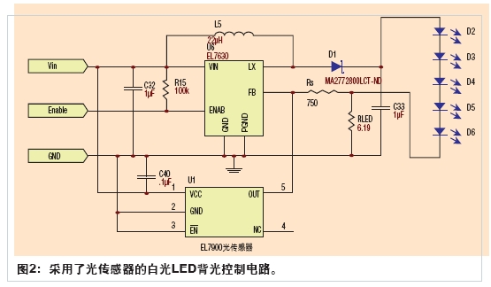 這些要求如何在一個(gè)實(shí)際的應(yīng)用中實(shí)現(xiàn)呢?讓我們看一看環(huán)境光傳感器是如何在一個(gè)自動(dòng)的白光LED背光控制電路中工作的,在汽車背光應(yīng)用中通??梢钥吹竭@種控制電路。