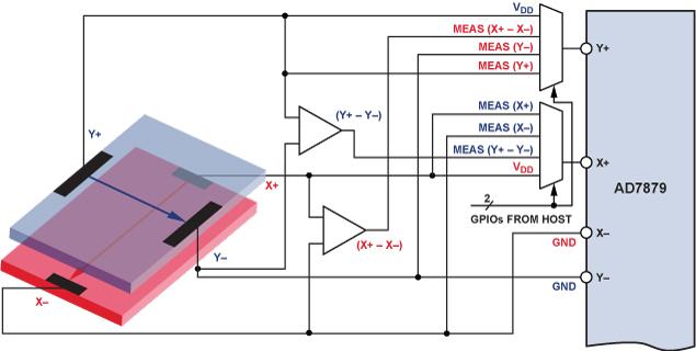 對(duì)于各種消費(fèi)、醫(yī)療、汽車(chē)和工業(yè)設(shè)備,增強(qiáng)的低成本觸控式用戶(hù)界面是一個(gè)極具價(jià)值的特性。在許多消費(fèi)電子應(yīng)用中,設(shè)計(jì)師偏向使用容性觸摸屏,而不愿使用阻性觸摸技術(shù),原因是前者可以跟蹤手指,似乎能夠提供更友好的用戶(hù)交互體驗(yàn)。目前,低成本阻性技術(shù)的應(yīng)用市場(chǎng)包括:只需要單點(diǎn)觸控、至關(guān)重要的極其精確的空間分辨率、利用觸控筆來(lái)實(shí)現(xiàn)特定功能(如亞洲語(yǔ)言符號(hào)識(shí)別等),或者用戶(hù)必須戴手套的場(chǎng)合。 雖然阻性技術(shù)傳統(tǒng)上是用來(lái)檢測(cè)屏幕上“單點(diǎn)觸摸”的位置,但本文提出了一個(gè)創(chuàng)新的“兩點(diǎn)觸摸”概念,它利用阻性觸摸屏控制器 AD7879 在廉價(jià)的阻性觸摸屏上檢測(cè)最常見(jiàn)的雙指手勢(shì)(縮放、捏合和旋轉(zhuǎn))。