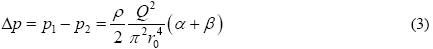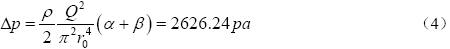 通過上式可以通過壓差來計(jì)算流量,為了平衡擴(kuò)張和壓縮作用以及盡量減少能量損失,當(dāng)θ=7°,φ=0.13,ζ=0.02,且流量Q為 61.1L/min,即在該管徑下流速為1m/s時(shí),對異徑管尺寸進(jìn)行優(yōu)化為:a=0.4r0,b=0.8r0,a=2.9264,b=3.1109,α+β=6.0373,α/β=0.9407
