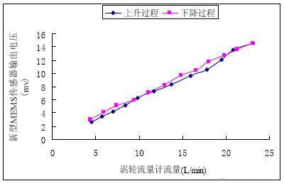 新型MEMS傳感器的標(biāo)定是通過渦輪流量計(jì)來實(shí)現(xiàn)的。采用串聯(lián)在系統(tǒng)中的CLG15耐高壓渦輪流量計(jì)(名義精度為0.5%)和SO64C-1型流量測試儀進(jìn)行標(biāo)定。