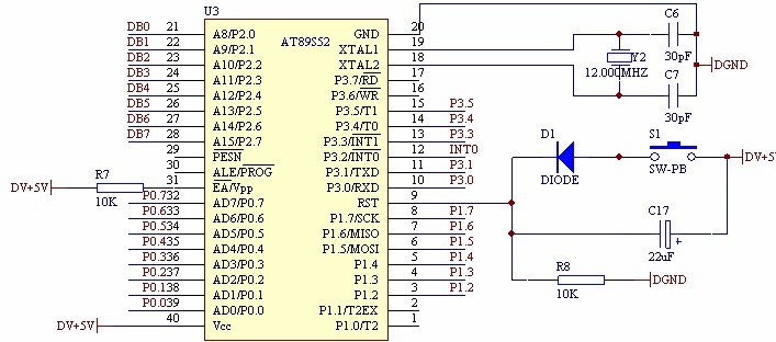 AT89S52 是一個低功耗,高性能CMOS 8 位單片機(jī),兼容標(biāo)準(zhǔn)MCS-51 指令系統(tǒng)及80C51 引腳結(jié)構(gòu)。