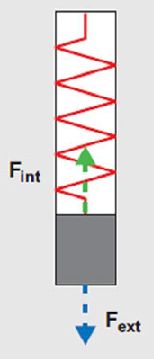 例如,圖1顯示了安裝于頂部位置的一個(gè)傳感器,與此同時(shí)底部正受到一個(gè)外力的拉拽,即Fext.在使用加速計(jì)的情況下,固定端(頂部)會(huì)粘附在要測(cè)量加速度的物體上,同時(shí)外力為粘附于另一端(底部)的質(zhì)量的慣性,而這一端不斷想要保持靜止。就固定于頂端的參考坐標(biāo)系而言(假設(shè)傳感器充當(dāng)?shù)氖且粋€(gè)彈簧,其具有很高的彈簧系數(shù) K),偏斜x會(huì)形成一種反作用力: