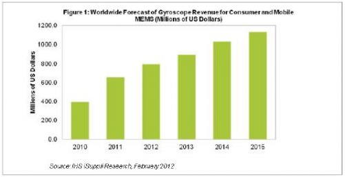 據(jù)IHS iSuppli公司的MEMS市場(chǎng)追蹤報(bào)告,由于蘋果iPhone和iPad去年第四季度創(chuàng)出最高銷量紀(jì)錄,2011年陀螺儀成為消費(fèi)與移動(dòng)MEMS領(lǐng)域中的創(chuàng)收大戶。