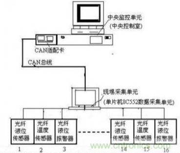 充分應(yīng)用CAN網(wǎng)絡(luò)和光纖傳感器的特點,將整個系統(tǒng)的擴(kuò)展-遠(yuǎn)程油庫油罐的液位、溫度信號實時監(jiān)測系統(tǒng)。