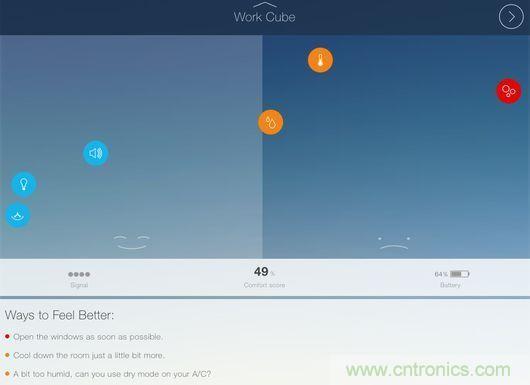 測試人員發(fā)現(xiàn),CubeSensors給出的這些信息較想象中更為有用。例如,產品提示一處起居室的溫度有點低,如果適當提升溫度會讓人感覺更加舒適及放松。而在辦公室中,CubeSensors提示改善光照條件能夠幫助提升工作效率。在臥室中,產品給出了需要開窗以便改善空氣質量的建議。用戶除了查看數(shù)據(jù)之外,還能看到應用給出的實用建議,例如“盡快開窗”或“提升溫度會讓你感覺更加舒適”。盡管看起來似乎平淡無奇,但CubeSensors背后的團隊表示,通過這些小建議,產品可以幫助用戶避免罹患感冒、過敏、頭疼等癥狀。