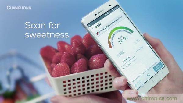 而在健康領域,長虹此前也發(fā)布過全球首款分子識別手機——長虹H2。通過分子識別手機,用戶能快速檢測果蔬糖分、水分、藥品真?zhèn)?,以及皮膚年齡,酒水類等物質。