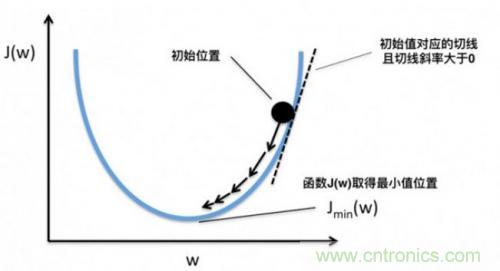 根據(jù)導(dǎo)數(shù)判斷損失函數(shù)f在x0點(diǎn)上應(yīng)當(dāng)如何移動(dòng),才能使得f最快到達(dá)最小值的方法,我們稱為梯度下降。梯度也就是導(dǎo)數(shù),沿著負(fù)梯度的方向,按照梯度值控制移動(dòng)步長,就能快速到達(dá)最小值。當(dāng)然,實(shí)際上我們未必能找到最小點(diǎn),特別是本身存在多個(gè)最小點(diǎn)時(shí),但如果這個(gè)值本身也足夠小,我們也是可以接受的,如下圖所示: