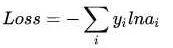 然而實(shí)際上x對應(yīng)的概率其實(shí)是第一類,比如[1,0,0],現(xiàn)在拿到的概率(或者可稱為似然)是[0.88、0.12、0]。那么它們之間究竟有多大的差距呢?這個(gè)差距就是損失值loss。如何獲取到損失值呢?在softmax里我們用互熵?fù)p失函數(shù)計(jì)算量最?。ǚ奖闱髮?dǎo)),如下所示: