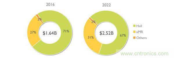 2016年和2022年按技術(shù)分類的磁傳感器市場份額