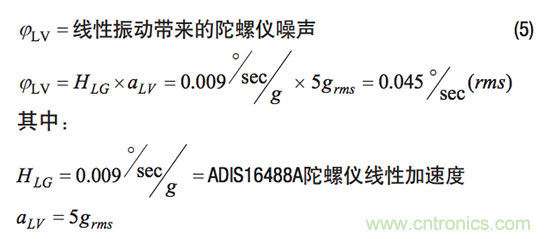 公式10通過線性加速度參數(shù)乘以ASDF (f)曲線幅值2.24 g rms,可估算產(chǎn)生的噪聲電平為0.02°/s (rms)。此噪聲電平比通過公式5得到的0.045°/s (rms)低55%,公式5的方法未采用頻譜項(xiàng)評估此噪聲源。這種改善是采用頻譜項(xiàng)定義振動(dòng)曲線以獲取值的一個(gè)示例。