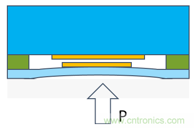 圖2:陶瓷電容壓力傳感器承壓后截面圖