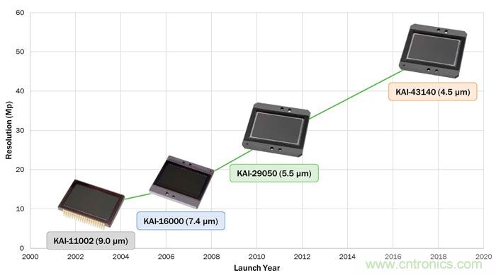 Interline Transfer CCD技術用于開發(fā)高分辨率、大格式圖像傳感器已超過15年,其分辨率隨市場需要逐漸提高。例如,2003年的KAI-11000圖像傳感器以35 mm光學格式提供1100萬像素的分辨率;但到2011年,這種相同的光學格式幾乎可支持三倍的分辨率。